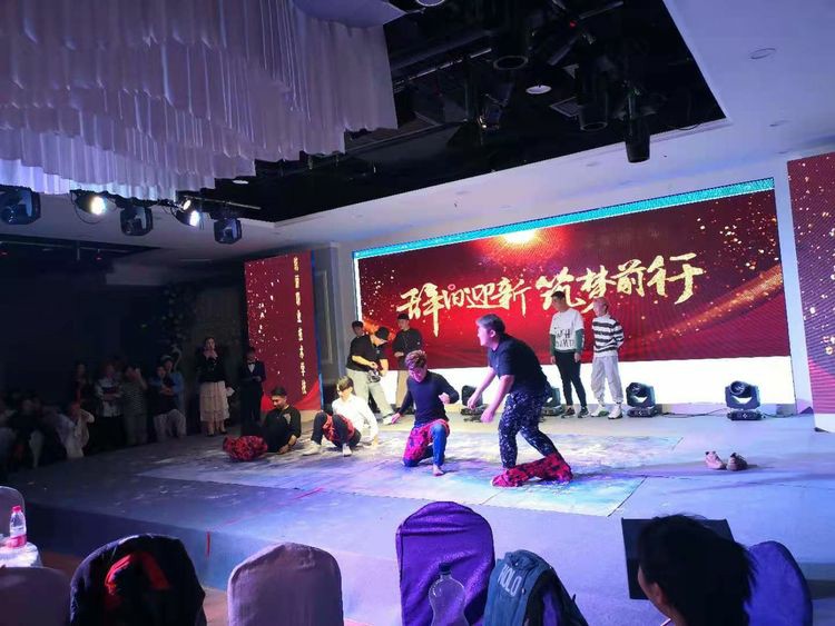 在颁奖仪式喜庆的氛围下,联欢会的文艺汇演部分正式开始!国际化妆班五位小学员,首先以精彩绝伦的舞蹈串烧“佐客女团”嗨翻全场,美发烫染班带来的“高仿真”独唱曲目“好想爱这个世界啊”同样迎来满场喝彩。亚健康调理师班的舞蹈“可爱摆”、高彩2班的舞蹈“漫步人生”和“虚胖组合”、美发弟子班的吉他弹唱“老男孩”、金牌美容师班的创意舞蹈“黑白腿”、国际纹绣班的舞蹈“Blackpink”、美发剪发班的歌曲串烧.......精彩且令人眼花缭乱的歌舞演出,将现场的气氛一次又一次地推向高潮。